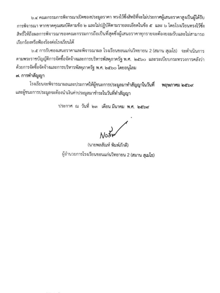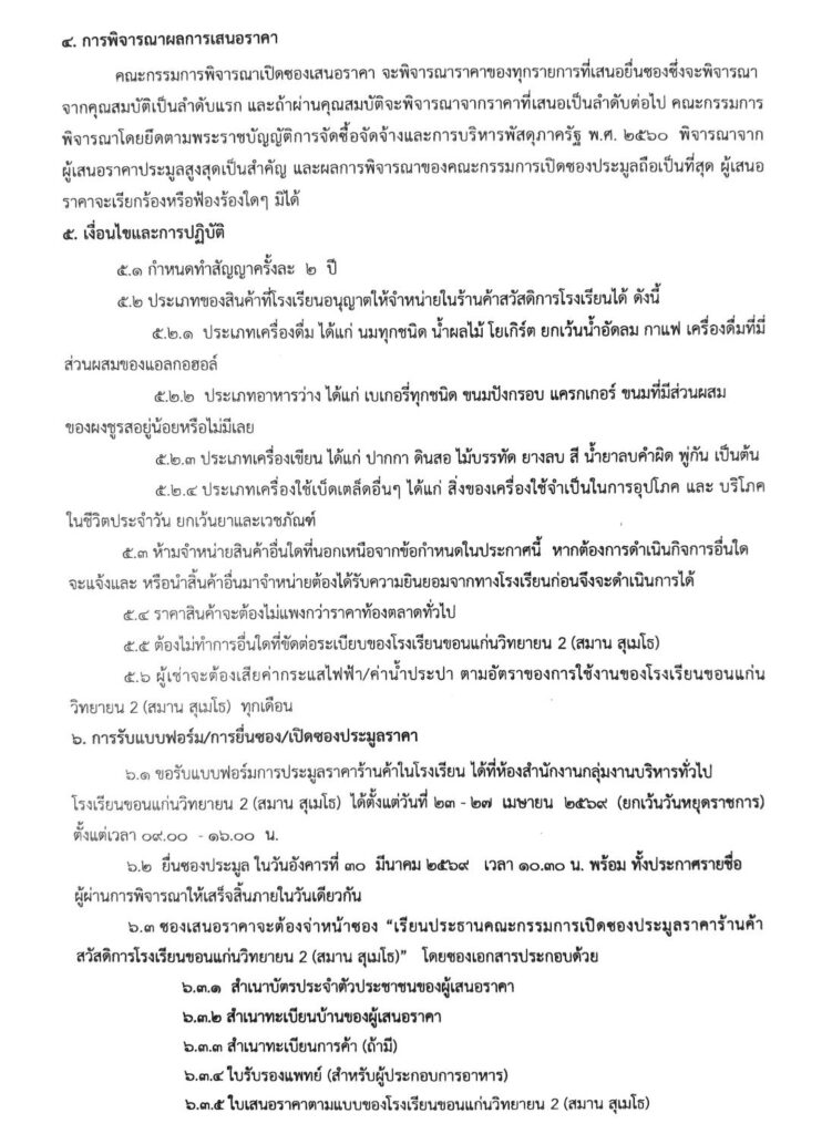 โรงเรียนขอนแก่นวิทยายน 2 (สมาน สุเมโธ) ขอประกาศ เรื่อง การประมูลร้านค้าสวัสดิการโรงเรียน ประจำปีการศึกษา 2569 เพื่อเปิดโอกาสให้ผู้ประกอบการที่มีความสนใจเข้าร่วมดำเนินการจำหน่ายสินค้าและบริการภายในสถานศึกษา