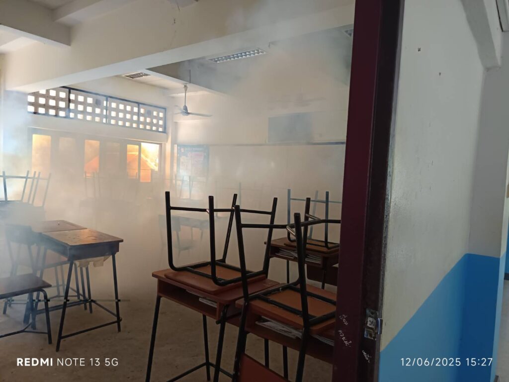วันพฤหัสบดีที่ 12 มิถุนายน 2568 เทศบาล ตำบลพระลับโดยกองสาธารณสุข และสิ่งแวดล้อม เทศบาลตำบลพระลับ ดำเนินการพ่นหมอกควันเพื่อกำจัดลูกน้ำยุงลาย ภายในห้องเรียนห้องปฏิบัติการ อาคารเรียนทุกอาคาร อาคารประกอบ และบริเวณพื้นที่ภายในโรงเรียน เพื่อป้องกันการเกิดลูกน้ำยุงลายในสถานศึกษา การดำเนินงานเป็นไปด้วยความเรียบร้อย