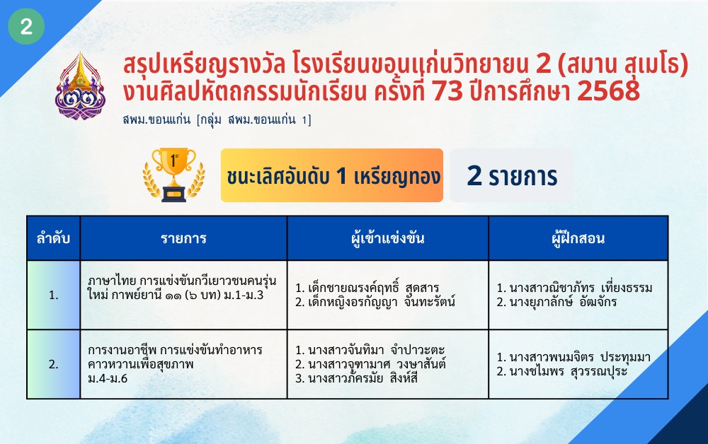จากการเข้าร่วมการแข่งขัน งานศิลปหัตถกรรมนักเรียน ครั้งที่ 73