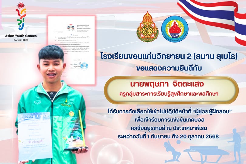 ความสำเร็จในครั้งนี้ถือเป็นเกียรติภูมิของโรงเรียน และเป็นแรงบันดาลใจแก่นักเรียนทุกคน ขอร่วมส่งกำลังใจให้คุณครูพฤษภาประสบความสำเร็จและสร้างชื่อเสียงให้กับประเทศไทย ![]()