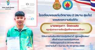 โรงเรียนขอนแก่นวิทยายน 2 (สมาน สุเมโธ) ขอแสดงความยินดีกับ นายพฤษภา จิตตะแสง ครูกลุ่มสาระการเรียนรู้สุขศึกษาและพลศึกษา ที่ได้รับการคัดเลือกเข้าปฏิบัติหน้าที่ “ผู้ช่วยผู้ฝึกสอน” เพื่อเข้าร่วมการแข่งขัน กีฬาเทคบอล Asian Youth Games 2025 ณ ประเทศบาห์เรน ระหว่างวันที่ 1 กันยายน – 20 ตุลาคม 2568 ความสำเร็จในครั้งนี้ถือเป็นเกียรติภูมิของโรงเรียน และเป็นแรงบันดาลใจแก่นักเรียนทุกคน ขอร่วมส่งกำลังใจให้คุณครูพฤษภาประสบความสำเร็จและสร้างชื่อเสียงให้กับประเทศไทย